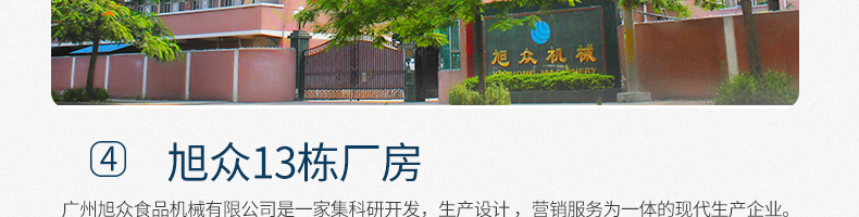 廣州旭眾食品機(jī)械有限公司是一家集科研開發(fā),生產(chǎn)設(shè)計,營銷服務(wù)為一體的現(xiàn)代化生產(chǎn)企業(yè)?,F(xiàn)代化生產(chǎn)車間,精湛制造技術(shù),所產(chǎn)機(jī)械歷經(jīng)市場重重考驗,不斷贏得海內(nèi)外客戶的贊譽(yù)。