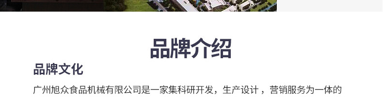 廣州旭眾食品機械有限公司是一家集科研開發(fā),生產(chǎn)設(shè)計,營銷服務(wù)為一體的現(xiàn)代化生產(chǎn)企業(yè)?,F(xiàn)代化生產(chǎn)車間,精湛制造技術(shù),所產(chǎn)機械歷經(jīng)市場重重考驗,不斷贏得海內(nèi)外客戶的贊譽。