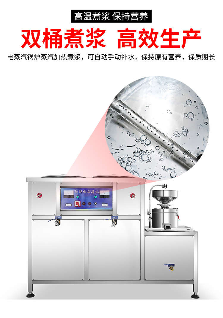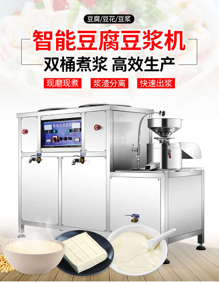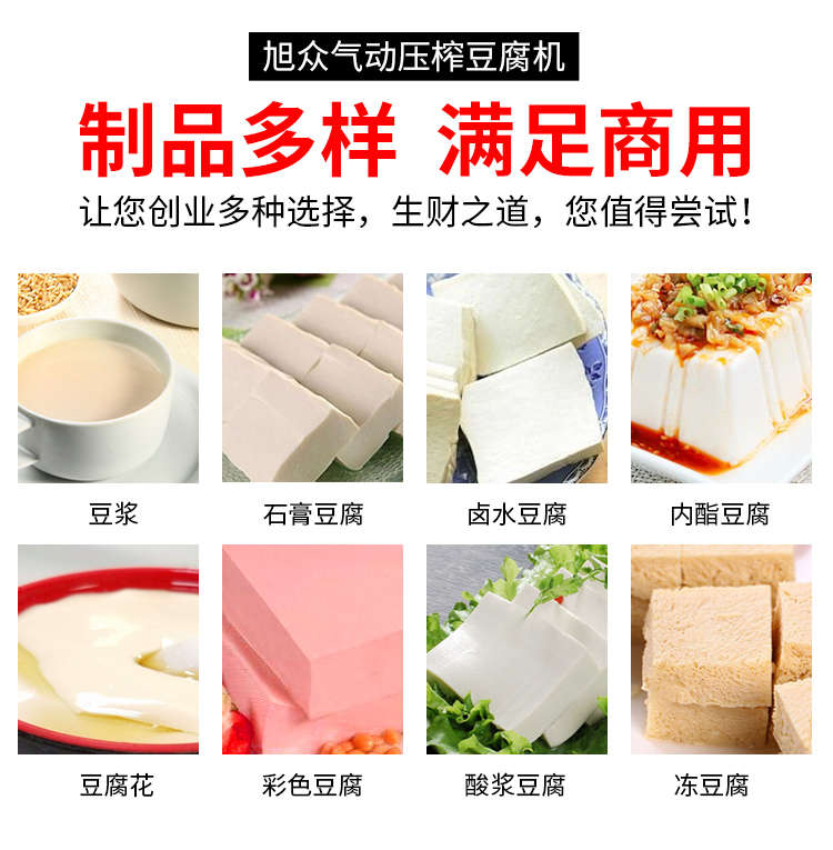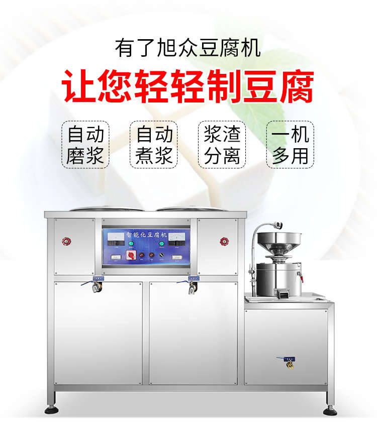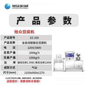 XZ-300型氣動壓榨豆腐機(jī),智能豆腐豆?jié){機(jī),雙桶煮漿高效生產(chǎn)現(xiàn)磨現(xiàn)煮,漿渣分離快速出漿。機(jī)器運(yùn)行穩(wěn)定不銹鋼材質(zhì)打造,堅固耐用,安全衛(wèi)生,時尚大方,易于清洗。