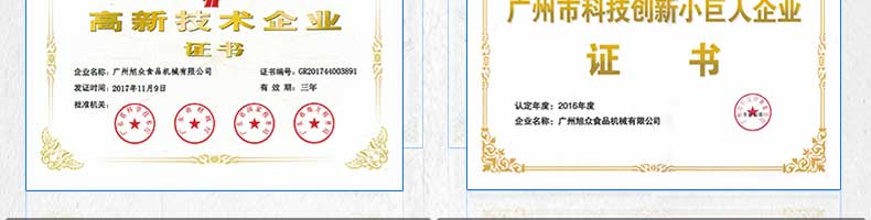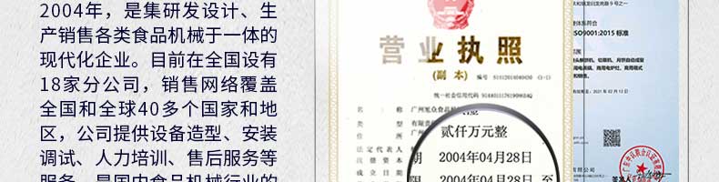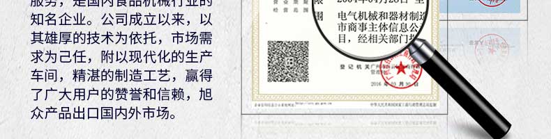 廣州旭眾食品機(jī)械有限公司是一家集科研開(kāi)發(fā),生產(chǎn)設(shè)計(jì),營(yíng)銷(xiāo)服務(wù)為一體的現(xiàn)代化生產(chǎn)企業(yè)。現(xiàn)代化生產(chǎn)車(chē)間,精湛制造技術(shù),所產(chǎn)機(jī)械歷經(jīng)市場(chǎng)重重考驗(yàn),不斷贏得海內(nèi)外客戶(hù)的贊譽(yù)。