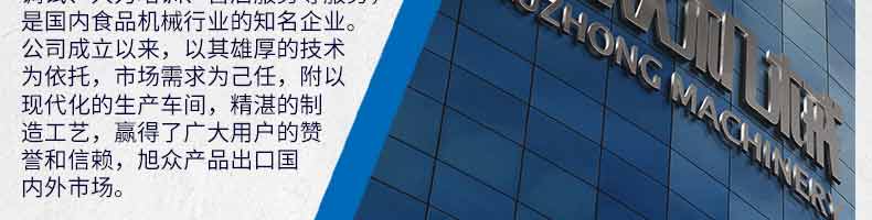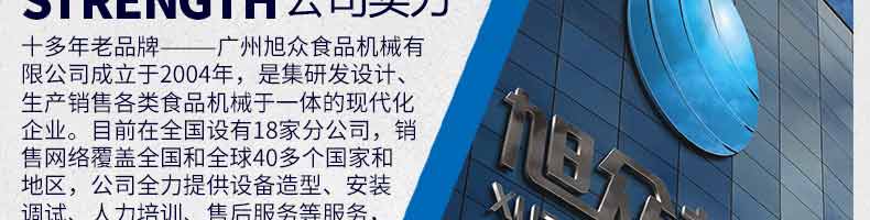 廣州旭眾食品機械有限公司是一家集科研開發(fā),生產設計,營銷服務為一體的現代化生產企業(yè)?,F代化生產車間,精湛制造技術,所產機械歷經市場重重考驗,不斷贏得海內外客戶的贊譽。