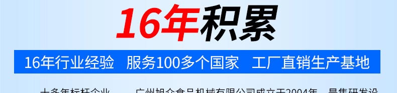 廣州旭眾食品機(jī)械有限公司是一家集科研開發(fā),生產(chǎn)設(shè)計(jì),營銷服務(wù)為一體的現(xiàn)代化生產(chǎn)企業(yè)?,F(xiàn)代化生產(chǎn)車間,精湛制造技術(shù),所產(chǎn)機(jī)械歷經(jīng)市場(chǎng)重重考驗(yàn),不斷贏得海內(nèi)外客戶的贊譽(yù)。