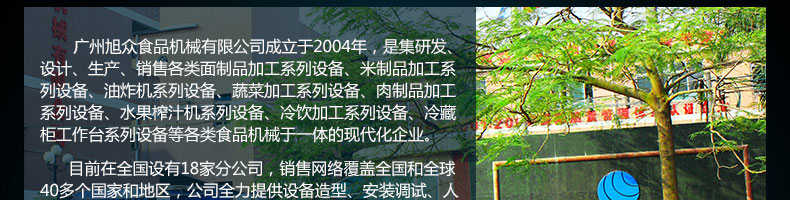 廣州旭眾食品機(jī)械有限公司是一家集科研開發(fā),生產(chǎn)設(shè)計(jì),營(yíng)銷服務(wù)為一體的現(xiàn)代化生產(chǎn)企業(yè)?,F(xiàn)代化生產(chǎn)車間,精湛制造技術(shù),所產(chǎn)機(jī)械歷經(jīng)市場(chǎng)重重考驗(yàn),不斷贏得海內(nèi)外客戶的贊譽(yù)。