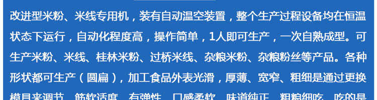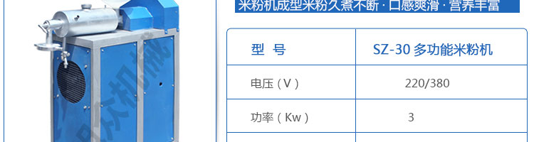 SZ-30米粉機,生產(chǎn)多樣性可生產(chǎn)米粉、米線、粉絲、粉條、、年糕、玉米面條、各種雜糧粉絲、各種面條、雜糧面條、彩色面條以及以紅薯、玉米、大豆、蠶豆等制成淀粉為原料的等多種食品而且每種食品厚薄、粗細(xì)等規(guī)格可根據(jù)需要任意調(diào)整。