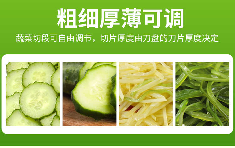 XZ-690A型多功能切菜機(jī),工作效率高,幫你省人工費。1小時可切600kg-1600kg/h,1臺機(jī)器等于多名廚師同時為您工作。一機(jī)多用,可切瓜果、蔬菜、藥材,刀片可進(jìn)行更換,設(shè)計周到,結(jié)構(gòu)合理,簡單輕松應(yīng)對。