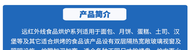 VH系列遠紅外線食品烘爐(電烘爐),適用于面包、月餅、蛋糕、土司、漢堡等及其它適合烘烤的食品的加工處理。適用于面包店、烘焙店、學(xué)校等單位食堂。可滿足不同客戶群體。