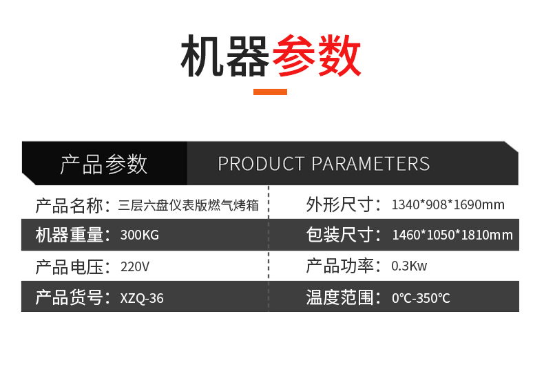 三層六盤儀表版燃氣烤箱,