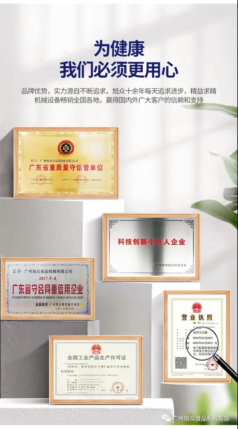 廣州旭眾食品機械有限公司是一家集科研開發(fā),生產(chǎn)設(shè)計,營銷服務(wù)為一體的現(xiàn)代化生產(chǎn)企業(yè)?,F(xiàn)代化生產(chǎn)車間,精湛制造技術(shù),所產(chǎn)機械歷經(jīng)市場重重考驗,不斷贏得海內(nèi)外客戶的贊譽。