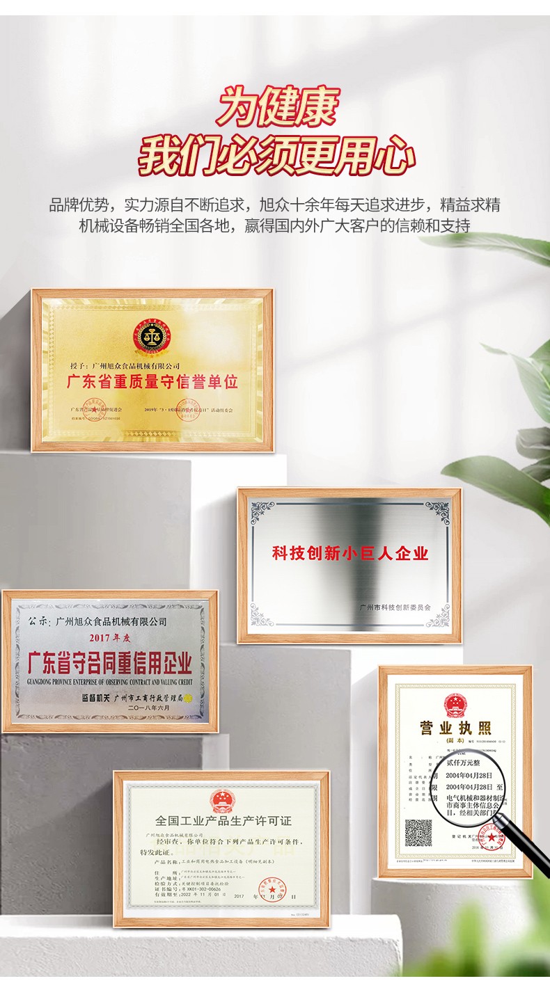 廣州旭眾食品機(jī)械有限公司是一家集科研開發(fā),生產(chǎn)設(shè)計,營銷服務(wù)為一體的現(xiàn)代化生產(chǎn)企業(yè)?,F(xiàn)代化生產(chǎn)車間,精湛制造技術(shù),所產(chǎn)機(jī)械歷經(jīng)市場重重考驗,不斷贏得海內(nèi)外客戶的贊譽(yù)。
