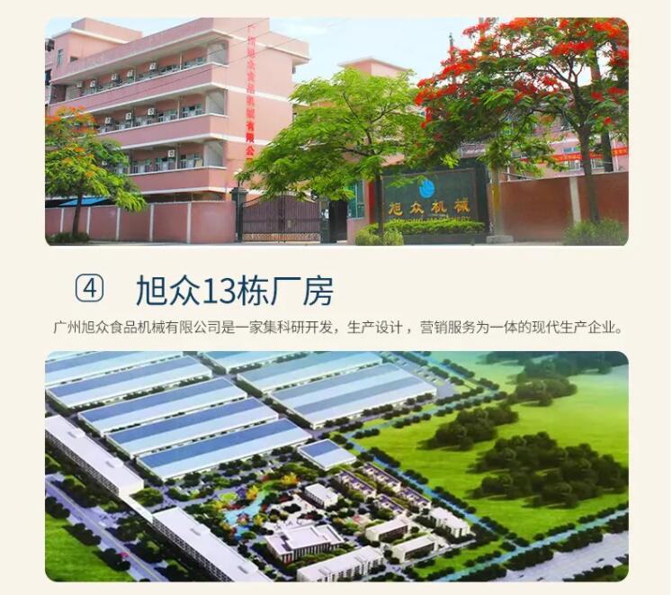 廣州旭眾食品機(jī)械有限公司是一家集科研開發(fā),生產(chǎn)設(shè)計(jì),營銷服務(wù)為一體的現(xiàn)代化生產(chǎn)企業(yè)。現(xiàn)代化生產(chǎn)車間,精湛制造技術(shù),所產(chǎn)機(jī)械歷經(jīng)市場重重考驗(yàn),不斷贏得海內(nèi)外客戶的贊譽(yù)。