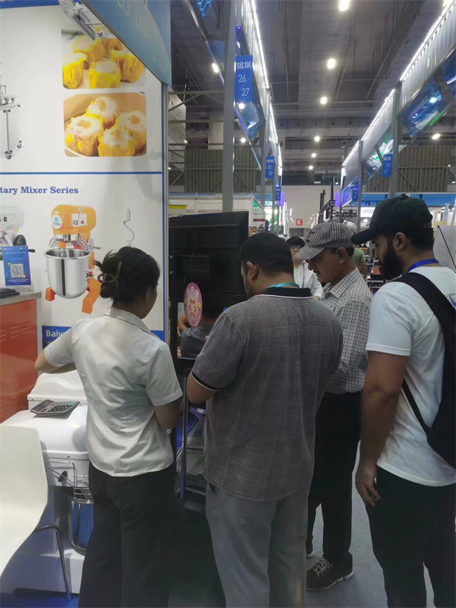 展臺(tái)上整齊地?cái)[放著各種食品加工機(jī)械,從冰淇淋機(jī)到包子機(jī)、和面機(jī)、攪拌機(jī)等,每一樣產(chǎn)品都展示著公司的技術(shù)實(shí)力和創(chuàng)新能力。