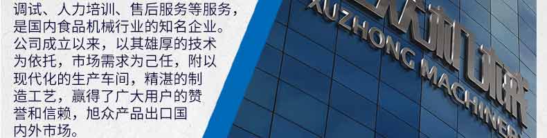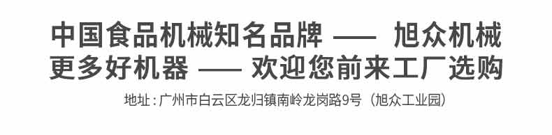 廣州旭眾食品機(jī)械有限公司是一家集科研開發(fā),生產(chǎn)設(shè)計(jì),營銷服務(wù)為一體的現(xiàn)代化生產(chǎn)企業(yè)?,F(xiàn)代化生產(chǎn)車間,精湛制造技術(shù),所產(chǎn)機(jī)械歷經(jīng)市場重重考驗(yàn),不斷贏得海內(nèi)外客戶的贊譽(yù)。