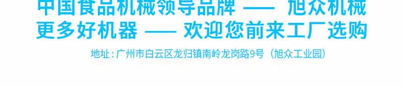 廣州旭眾食品機械有限公司是一家集科研開發(fā),生產(chǎn)設(shè)計,營銷服務(wù)為一體的現(xiàn)代化生產(chǎn)企業(yè)?,F(xiàn)代化生產(chǎn)車間,精湛制造技術(shù),所產(chǎn)機械歷經(jīng)市場重重考驗,不斷贏得海內(nèi)外客戶的贊譽。