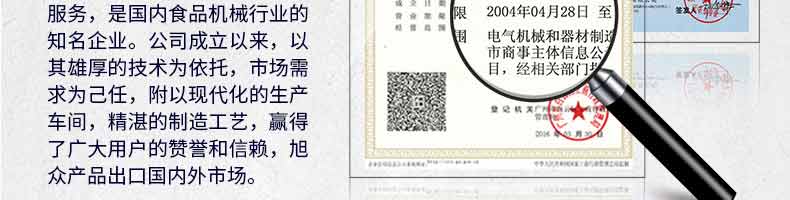 廣州旭眾食品機(jī)械有限公司是一家集科研開(kāi)發(fā),生產(chǎn)設(shè)計(jì),營(yíng)銷(xiāo)服務(wù)為一體的現(xiàn)代化生產(chǎn)企業(yè)。現(xiàn)代化生產(chǎn)車(chē)間,精湛制造技術(shù),所產(chǎn)機(jī)械歷經(jīng)市場(chǎng)重重考驗(yàn),不斷贏得海內(nèi)外客戶(hù)的贊譽(yù)。